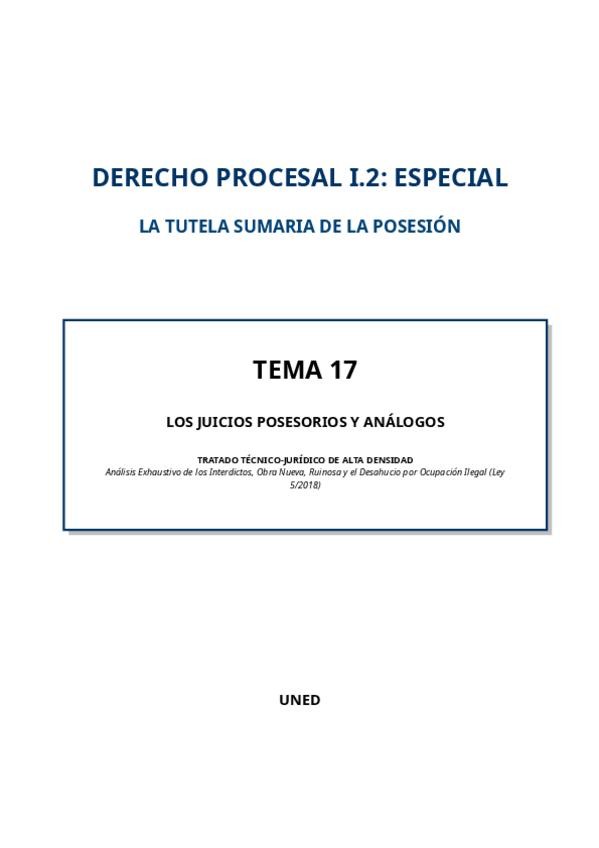 He publicado nuevos apuntes de 3º DERECHO PROCESAL I.2: ESPECIAL: TEMA-17-JUICIOS-POSESORIOS-GUIA-SUPER-UTIL-EXAMEN.pdf