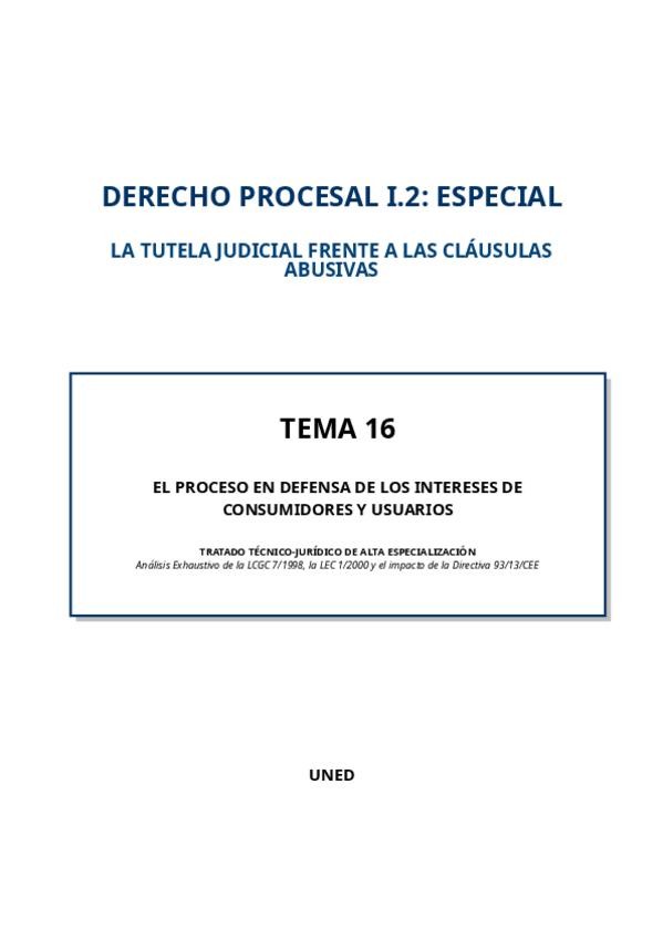 He publicado nuevos apuntes de 3º DERECHO PROCESAL I.2: ESPECIAL: TEMA-16-DEFENSA-CONSUMIDORES-GUIA-SUPER-UTIL-EXAMEN.pdf