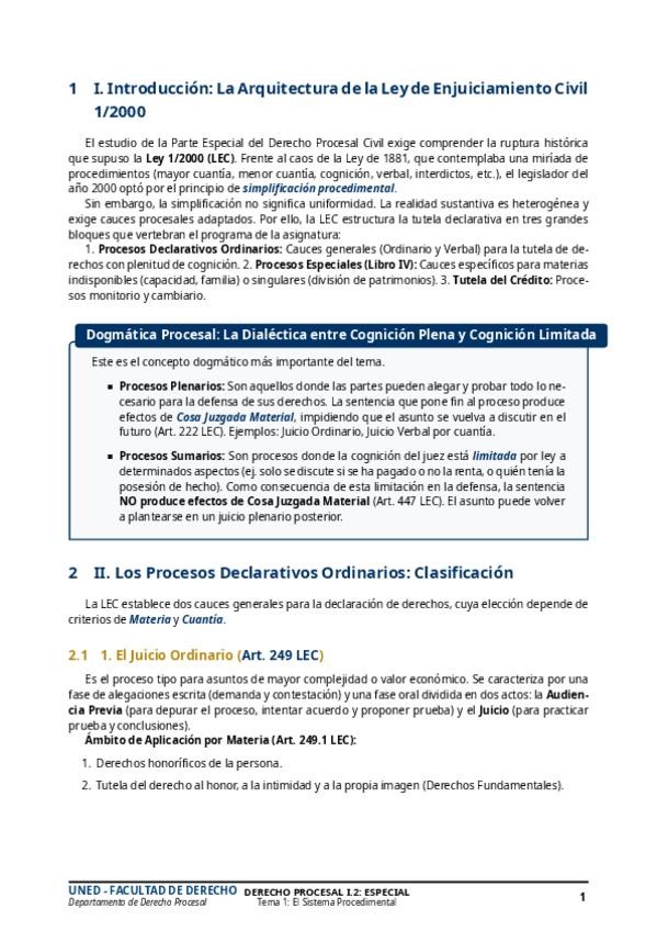 DERECHO PROCESAL I.2: ESPECIAL