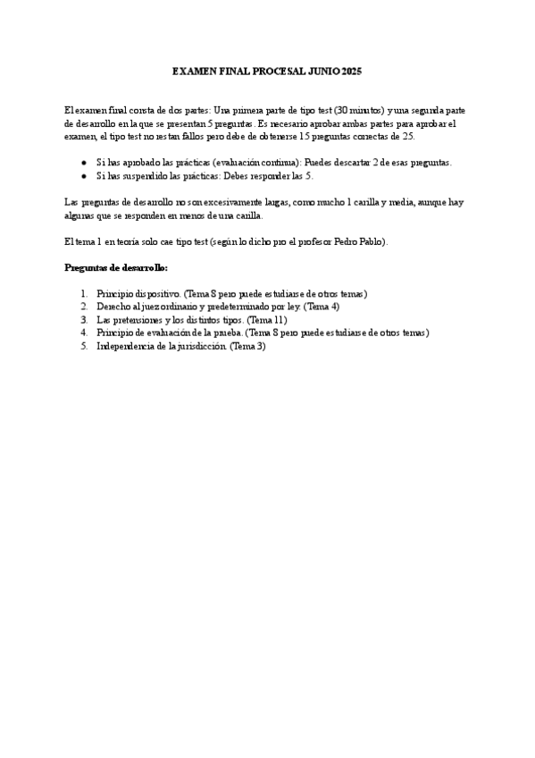Temario Procesal Completo Resumido + Examen Junio 2025 (Arturo Álvarez Alarcón)