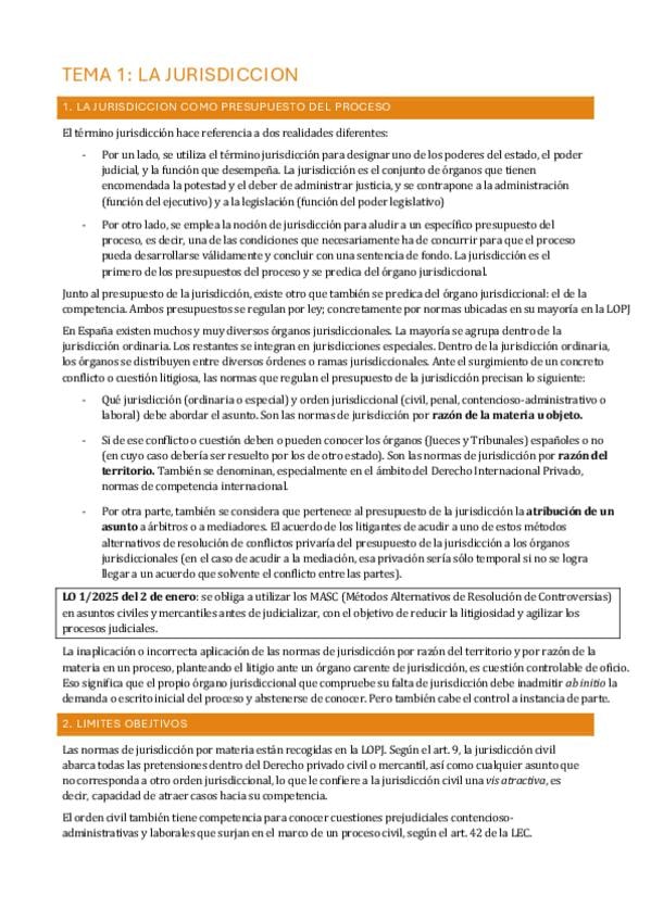TEMA DEL MANUAL DE DERECHO PROCESAL CIVIL I (edición actualizada)