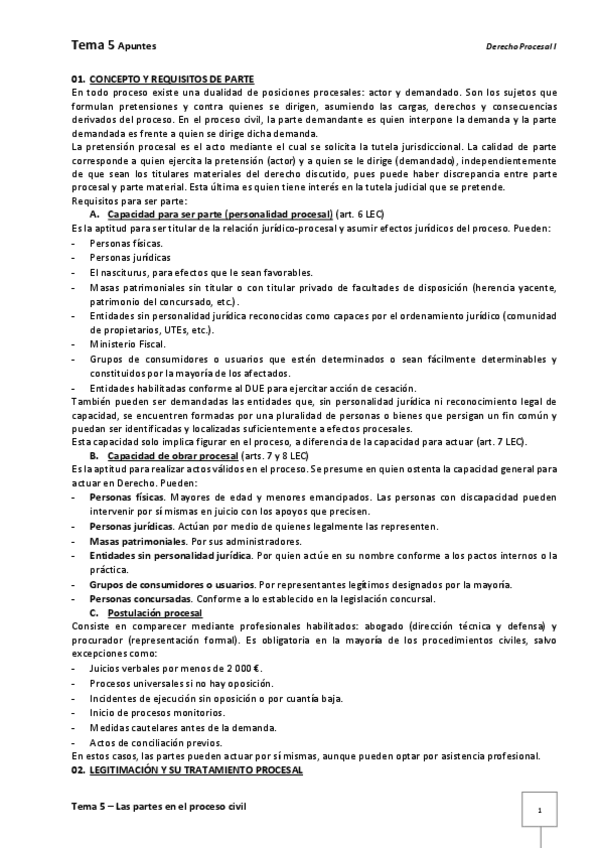 temas del 1-5 y 1y2 derecho procesal civil