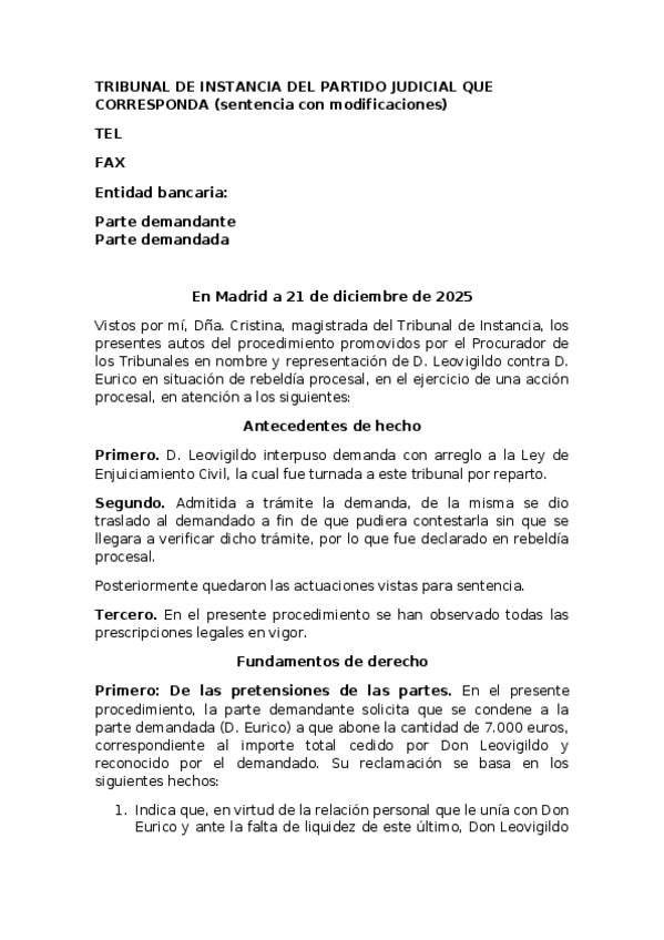 He publicado nuevos practicas de 3º Derecho Procesal II: Practica2-clase-SENTENCIA-DEL-JUZGADO-DE-PRIMERA-INSTANCIA-DE-MADRID.docx