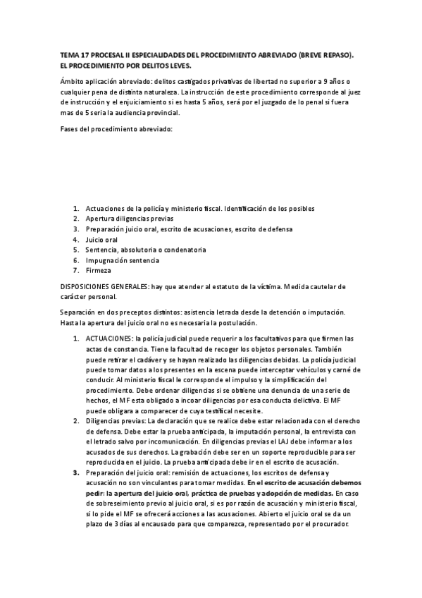 Correspondiente con la lección 7 del Manual: Lecciones de Derecho penal procesal (16º edición)-Teresa Armente