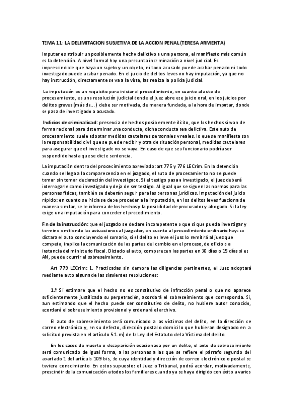 Correspondiente con la lección 9 del Manual: Lecciones de Derecho penal procesal (16º edición)-Teresa Armente