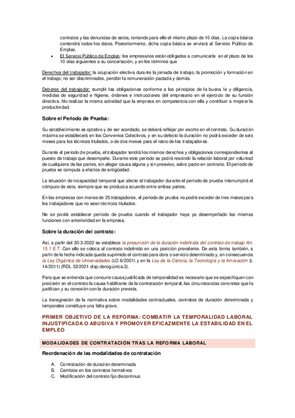 Contratación y reforma laboral apuntes del profesor