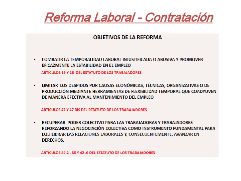 Reforma Laboral, apuntes del profesor