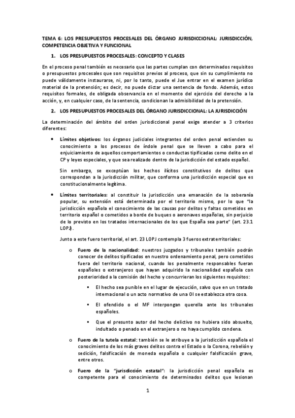 Correspondiente con la lección 6 del Manual: Lecciones de Derecho penal procesal (16º edición)-Teresa Armente