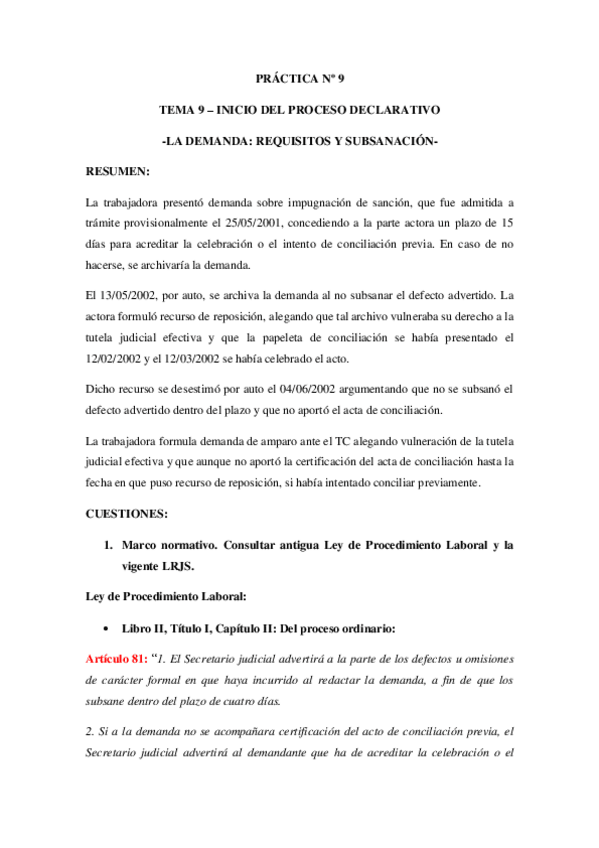 PRÁCTICAS DERECHO PROCESAL LABORAL