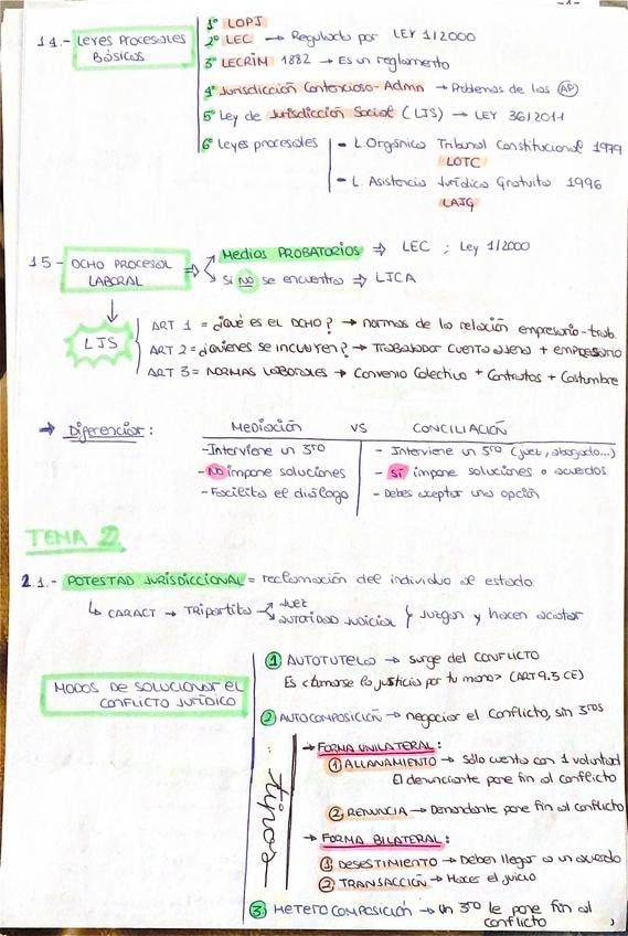 Todo el temario de procesal con indicaciones de lo que se ha dicho en clase, que es importante para el examen + tipo test de cada uno de los temas.