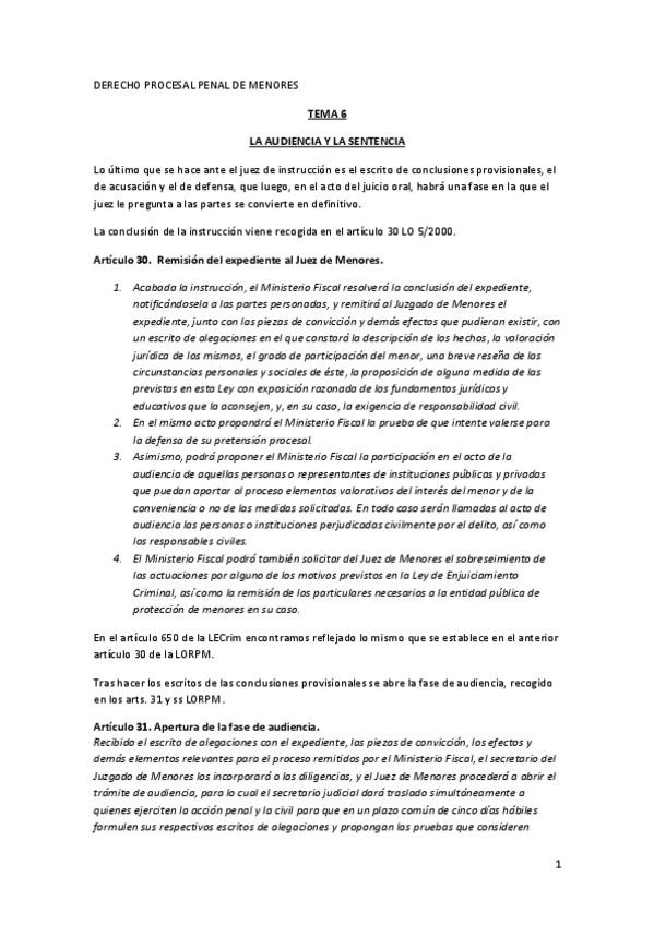 He publicado nuevos apuntes de 3º Derecho Procesal Penal de Menores: Tema 6. Fase de Audiencia y sentencia (1).pdf