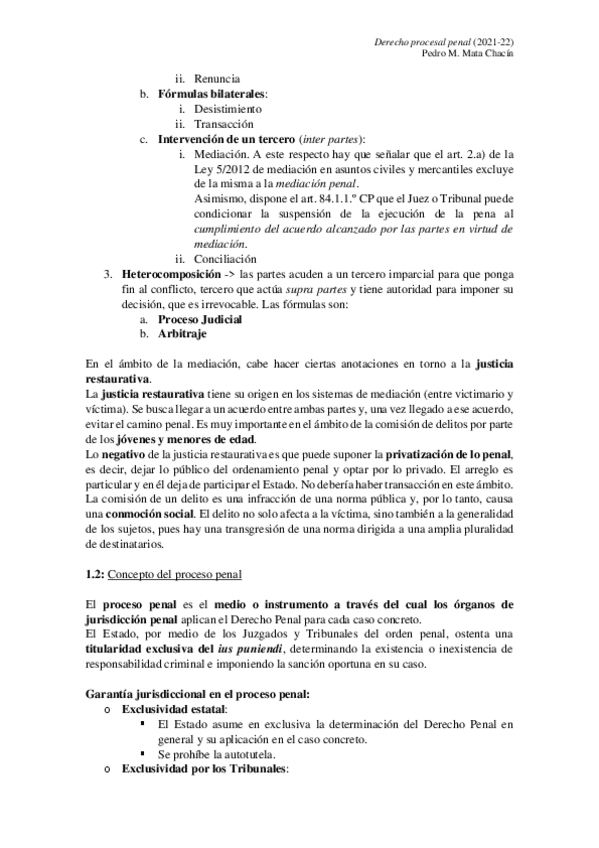 Apuntes de Derecho procesal penal. Grado en Derecho (curso 2021/22). Universidad Carlos III de Madrid. Estudiante: Pedro Miguel Mata Chacín. Profesora: Rocío Zafra Espinosa de los Monteros.