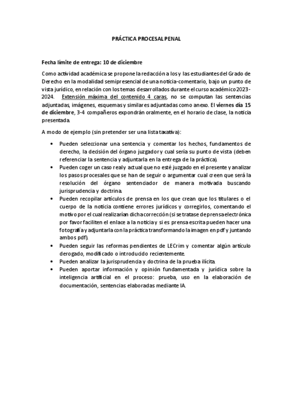 He publicado nuevos practicas de 4º Derecho Procesal Penal: Prácticas Evaluación Continua 2023-2024