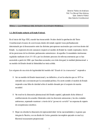 He publicado nuevos apuntes de 4º Derecho Público de Andalucía: Tema 1 - El Estado Federal.pdf