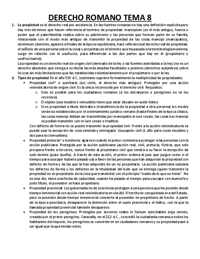 He publicado nuevos apuntes de 1º Derecho Romano: TEMA 8 - La propiedad