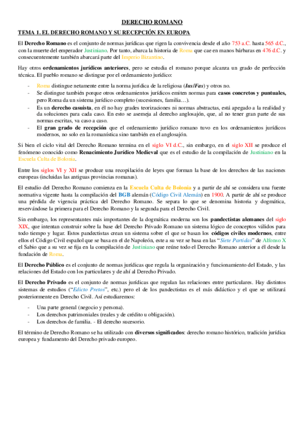 TEMA 1 - Recepción de derecho romano
