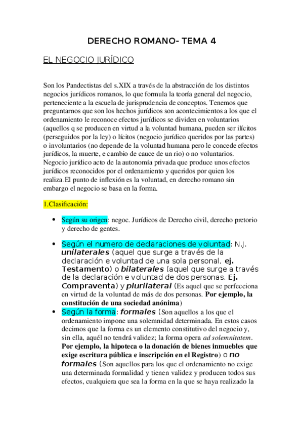 He publicado nuevos apuntes de 1º Derecho Romano: TEMA 4 - Clasificación de negocios jurídicos