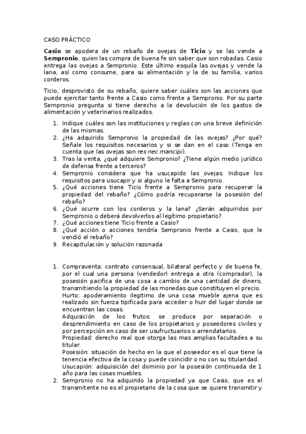 CASOS PRACTICOS DERECHO ROMANO