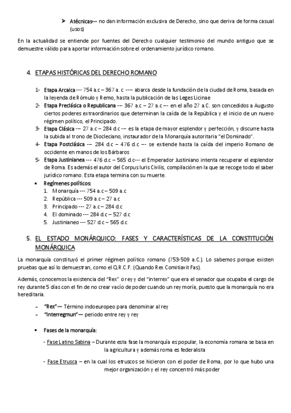 Apuntes de derecho romano sobre la evolución histórica del derecho en todas las etapas con contexto histórico, social y fuentes del derecho.