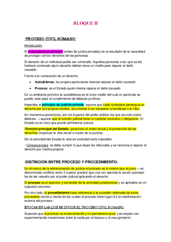 Derecho romano BLOQUE 2. Contiene derecho publico y privado y el procedimiento civil romano.