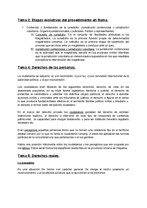 Apuntes TEMAS 1 a 7 de la asignatura Derecho Romano de la Facultad de Derecho de Ciudad Real