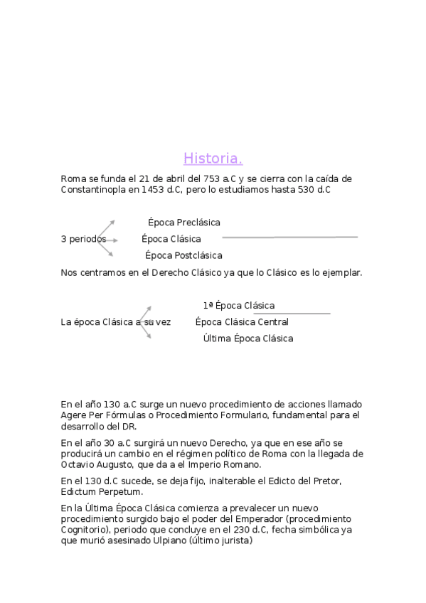 Apuntes cogidos de clase y completados con el manual. Solo falta el Derecho Justinianeo. Parcial aprobado.