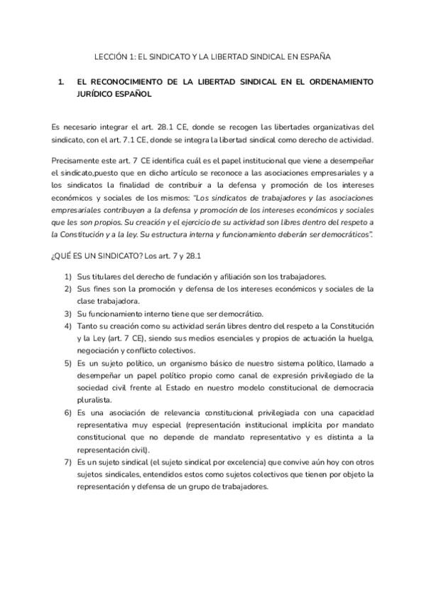 Derecho Sindical - Bloque I