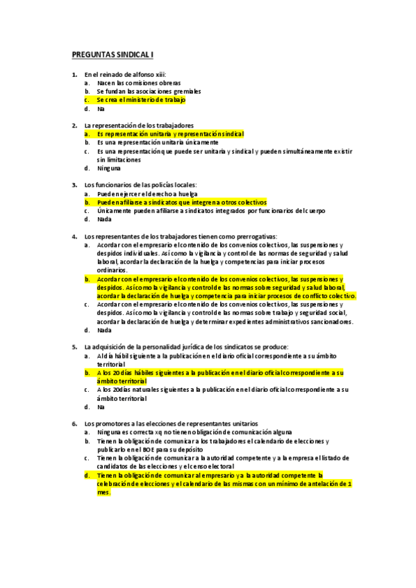 preguntas SINDICAL I