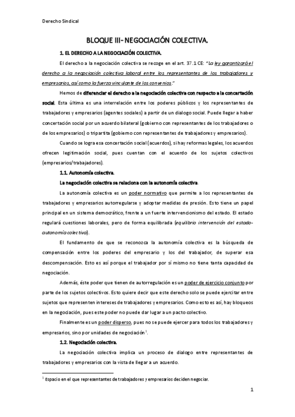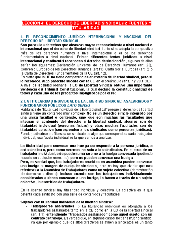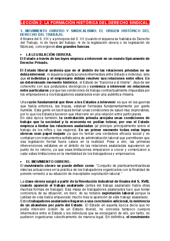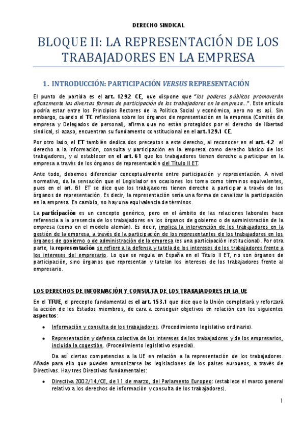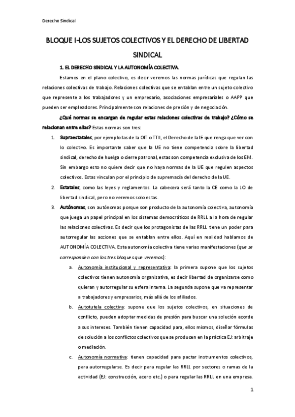Derecho Sindical - Bloque I