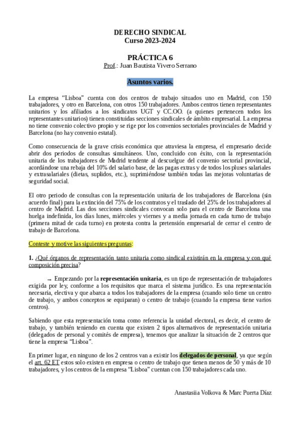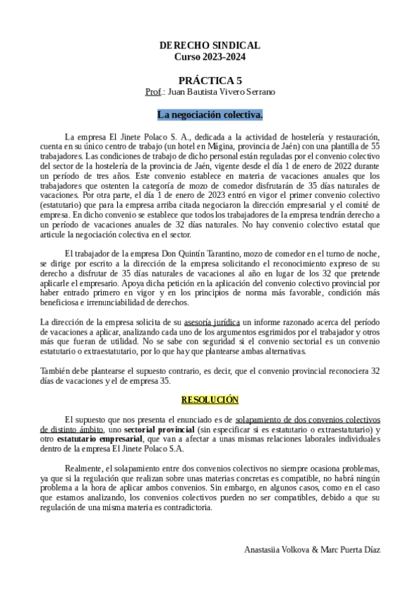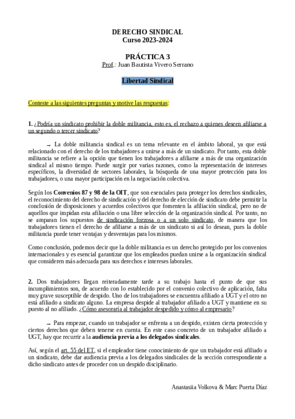 He publicado nuevos practicas de 3º Derecho Sindical: Prácticas JUAN BAUTISTA VIVERO SERRANO