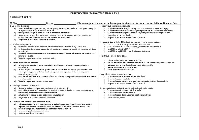 Modelos de tipo test + posibles preguntas de los diversos temas: NO SON EXAMENES TEST RESUELTOS.