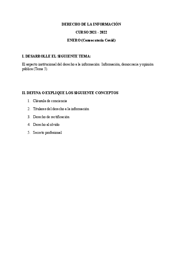 He publicado nuevos examenes de 1º Derecho y deontologia de la informacion (parte I): Derecho: Exámenes Derecho Curso 2021-2022