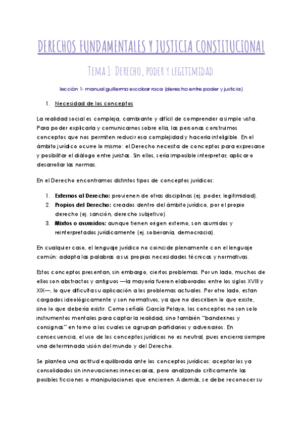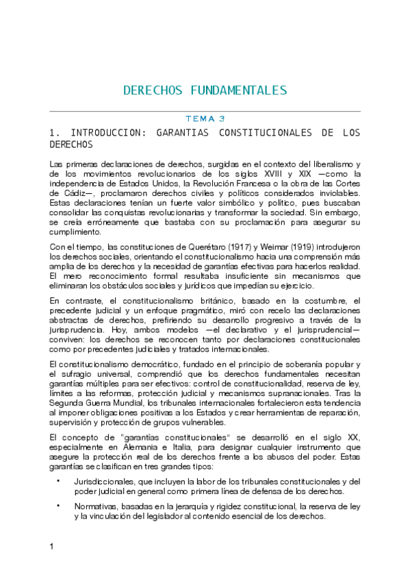Apuntes de clase lección 1 de Derechos Fundamentales y Justicia Constitucional DADE del curso 2025-2026