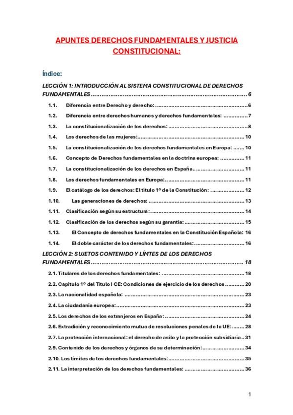 Apuntes de clase lección 1 de Derechos Fundamentales y Justicia Constitucional DADE del curso 2025-2026
