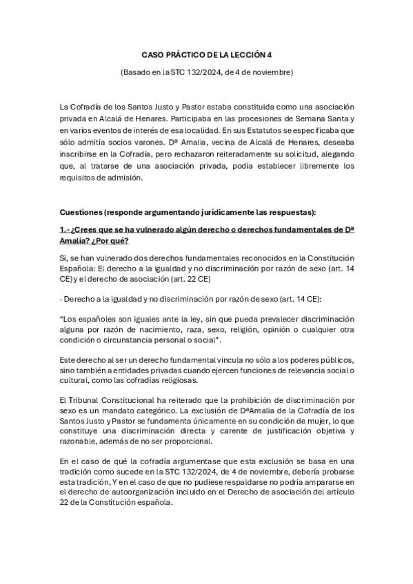 Práctica de la lección 1 de Derechos Fundamentales y Justicia Constitucional solucionada curso 2025-2026