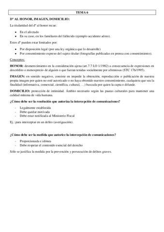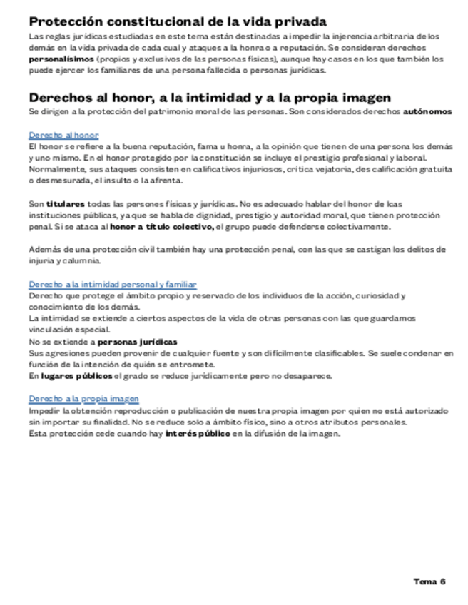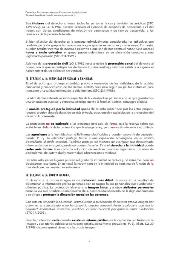 He publicado nuevos apuntes de 1º Derechos Fundamentales y su Proteccion Jurisdiccional: RESUMEN TEMA 6. PROTECCIÓN CONSTITUCIONAL DE LA VIDA PRIVADA- ESFERA PERSONAL.pdf