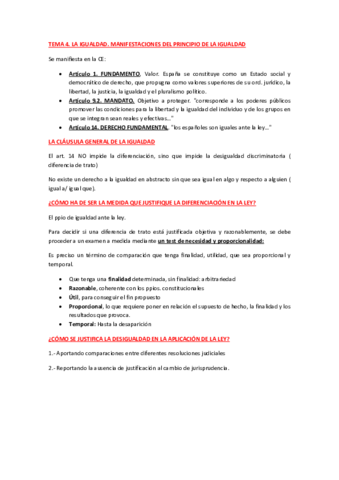He publicado nuevos apuntes de 1º Derechos Fundamentales y su Proteccion Jurisdiccional: RESUMEN TEMA 4. MANIFESTACIONES DEL PRINCIPIO DE LA IGUALDAD.pdf