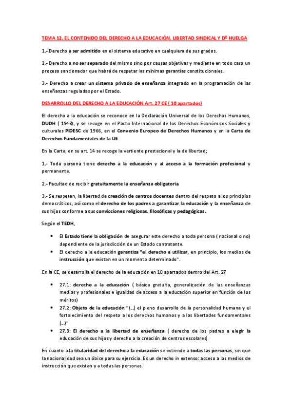 He publicado nuevos apuntes de 1º Derechos Fundamentales y su Proteccion Jurisdiccional: RESUMEN TEMA 12. EL CONTENIDO DEL DERECHO A LA EDUCACIÓN- LIBERTAD SINDICAL Y Dº HUELGA.pdf
