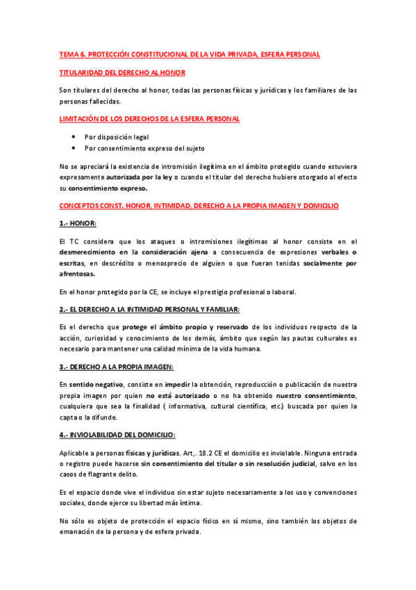 He publicado nuevos apuntes de 1º Derechos Fundamentales y su Proteccion Jurisdiccional: RESUMEN TEMA 6. PROTECCIÓN CONSTITUCIONAL DE LA VIDA PRIVADA- ESFERA PERSONAL.pdf