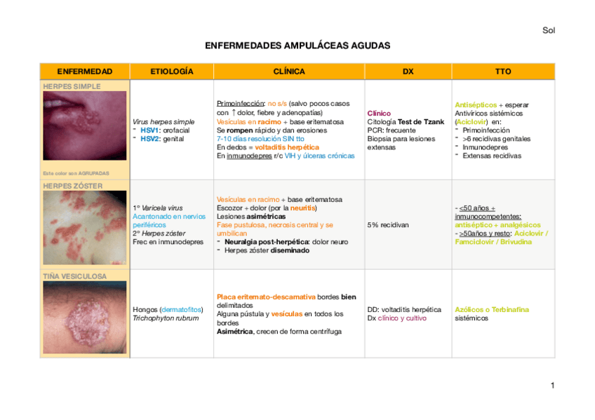 He publicado nuevos apuntes de 5º Dermatología: Tablas derma