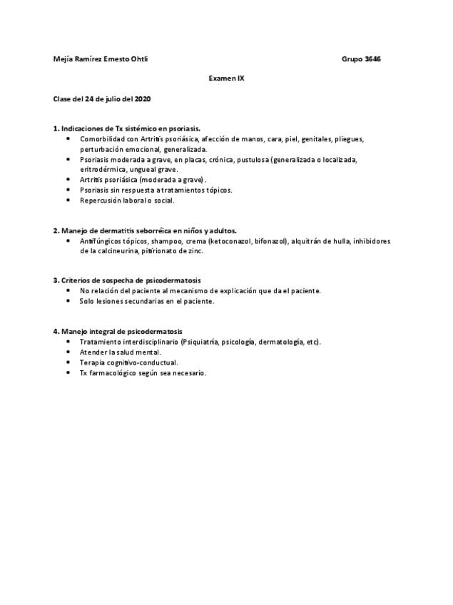 Es un resumen en forma de cuestionario del cto de dermatologia