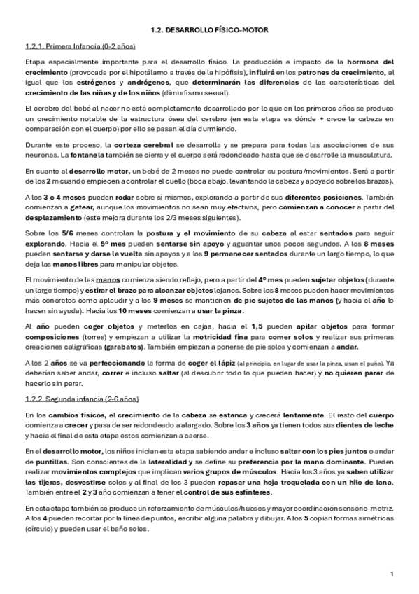 Resumen del T1 - Desarrollo físico-motor de la infancia de la universidad Isabel I (Asignatura obligatoria)