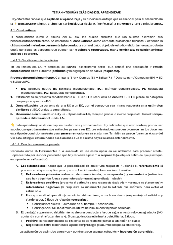 Resumen T4 - Teorías clásicas del aprendizaje de la universidad Isabel I (Asignatura obligatoria)