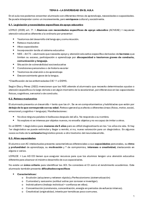 Resume T6 - Diversidad en el aula de la universidad Isabel I (Asignatura obligatoria)