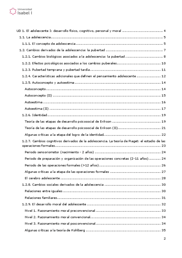 Resumen T2 - Desarrollo en la adolescencia de la universidad Isabel I de la universidad Isabel I (Asignatura obligatoria)