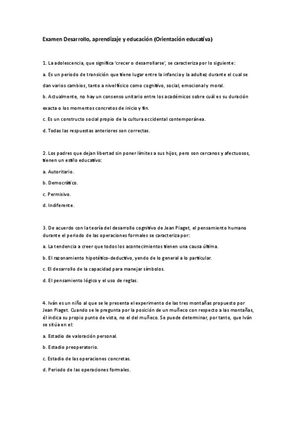 He publicado nuevos examenes de 1º Desarrollo, aprendizaje y educación: DESARROLLO-CASOS-EXAM.pdf