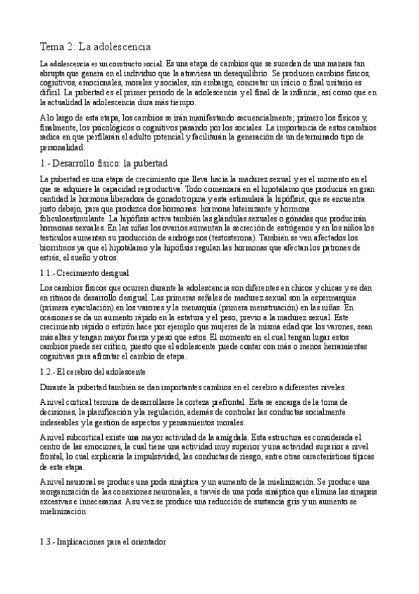 Resumen T2 - Desarrollo en la adolescencia de la universidad Isabel I de la universidad Isabel I (Asignatura obligatoria)