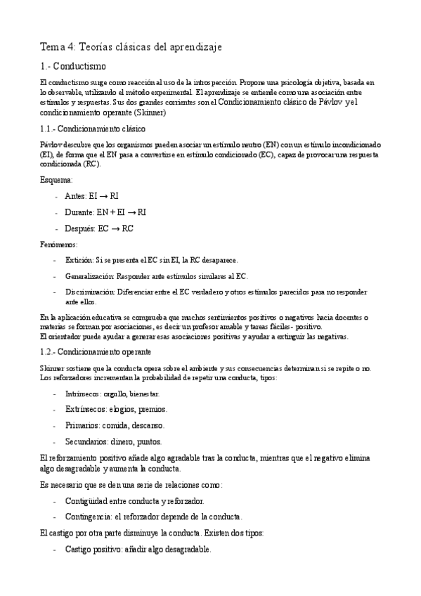 Resumen T4 - Teorías clásicas del aprendizaje de la universidad Isabel I (Asignatura obligatoria)