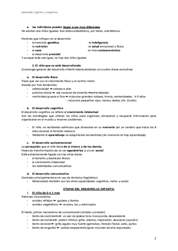 Apuntes tema 1 desarrollo cognitivo y linguístico, 2º Educación Infantil Móstoles, Emma Gallardo Richards