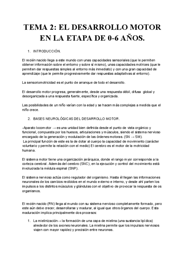 Resumen del tema 2 de la asignatura de "DESARROLLO COGNITIVO Y MOTOR".